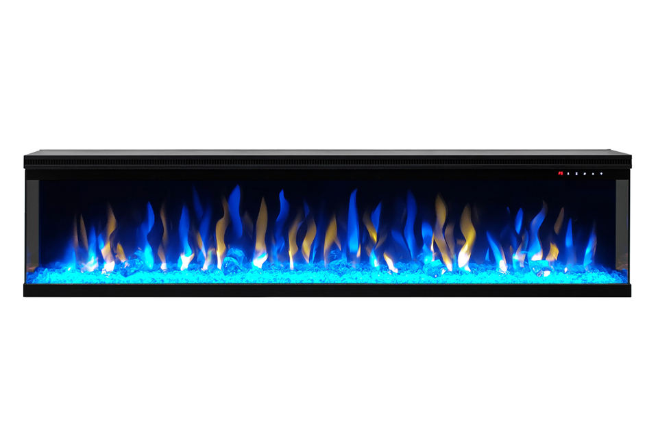 Cheminée électrique en verre à trois faces de 50''60'' avec thermostat personnalisé et protection contre la surchauffe pour villa