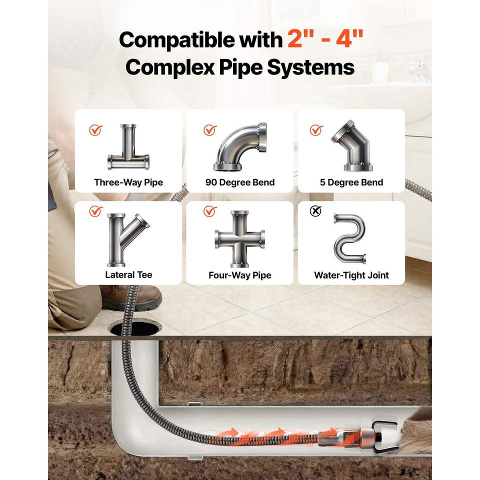 Machine de nettoyage de canalisations à alimentation manuelle 50 pieds x 5/16 pouces, vis de déboucheur électrique 228 tr/min pour perceuse, déboucheur de canalisations efficace