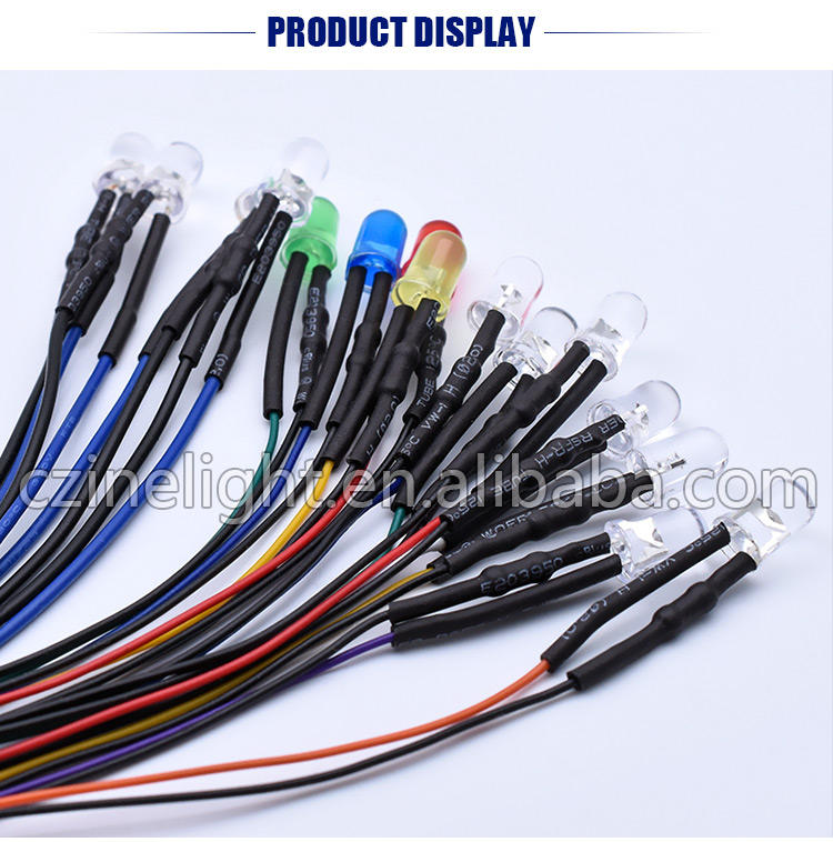 50 LED 5 MM/3mm A MENÉ LA DIODE 12V Pré-Câblé Résistance Rouge Bleu Vert Jaune Blanc Diods rond 20CM Pré-Câblé