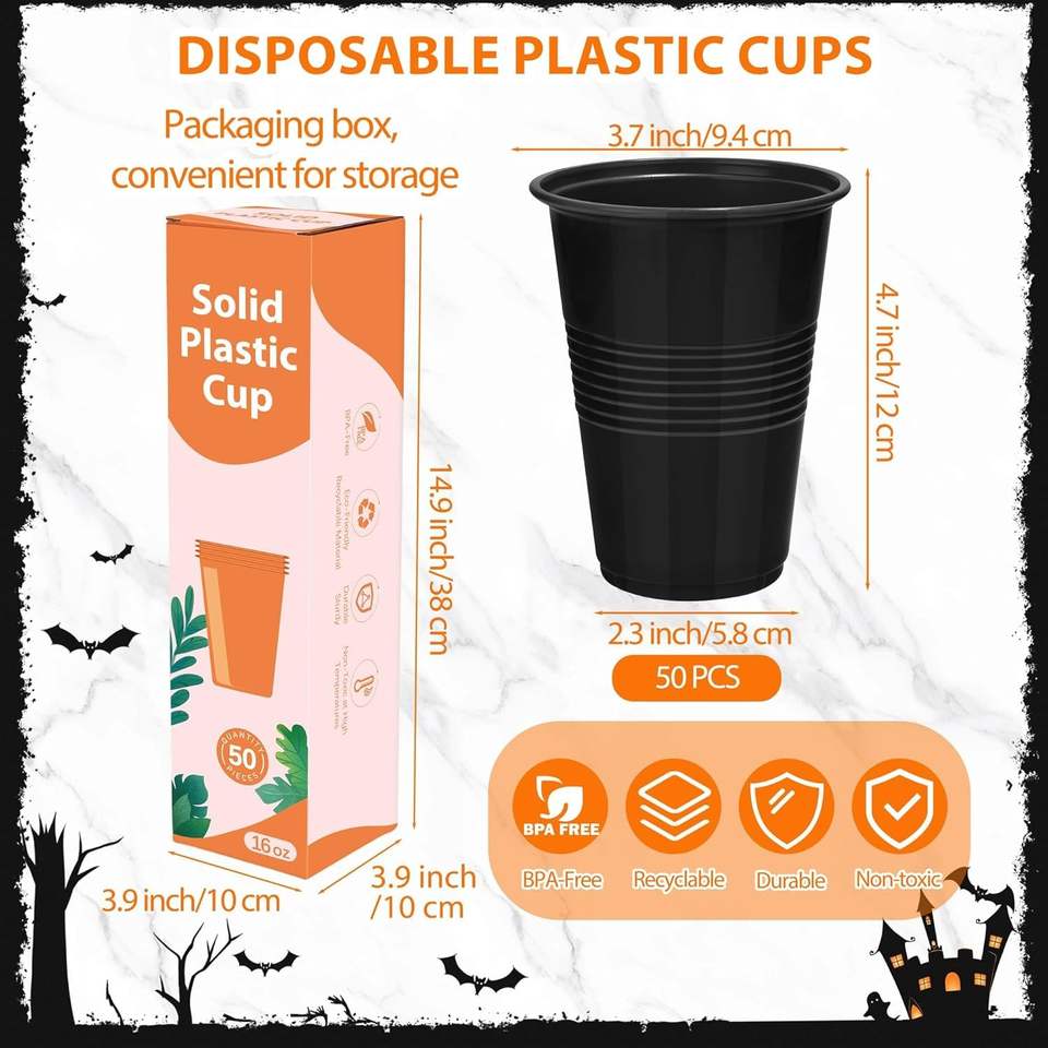 Lot de 50 gobelets en plastique jetables de 16 oz, couleur unie, solides et robustes, pour fêtes et anniversaires