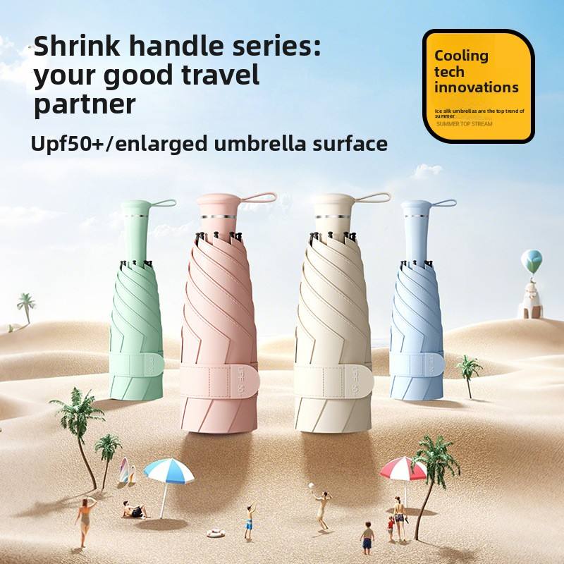 Parapluie pour femme à ouverture semi-automatique, pliable en trois sections, avec poignée rétractable à 50 %, revêtement noir, protection solaire, double usage, design moderne