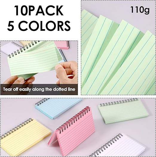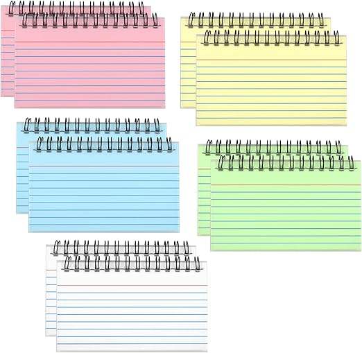 50 feuilles 5x3 pouces cartes flash multicolores cartes flash de révision en spirale pour l'école et le travail de bureau