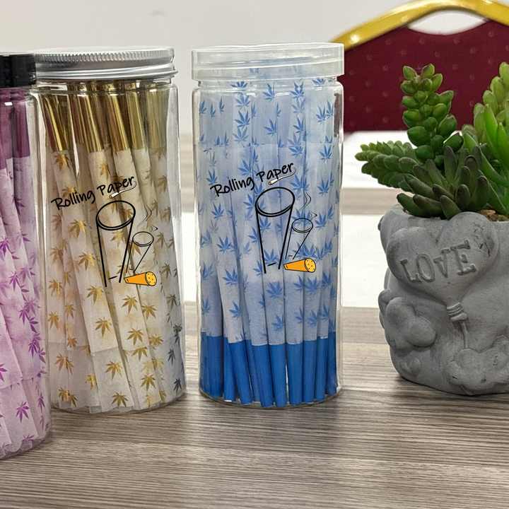 50 rouleaux/boîte, boîte en plastique transparente, rouleaux de papier à rouler extra larges coniques, papier à rouler ultra-fin, rouleaux de papier de banque USD, ruban adhésif, filtre M