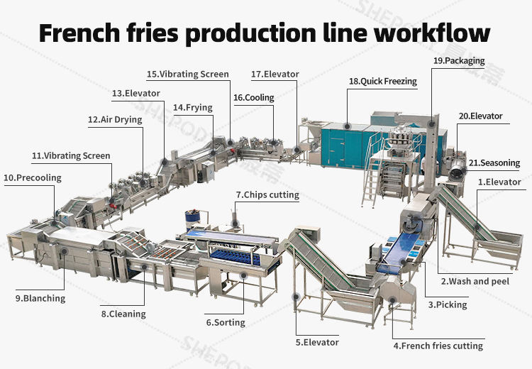 Machines industrielles de fabrication de frites de patate douce ondulées entièrement intégrées de 500 kg, friture continue