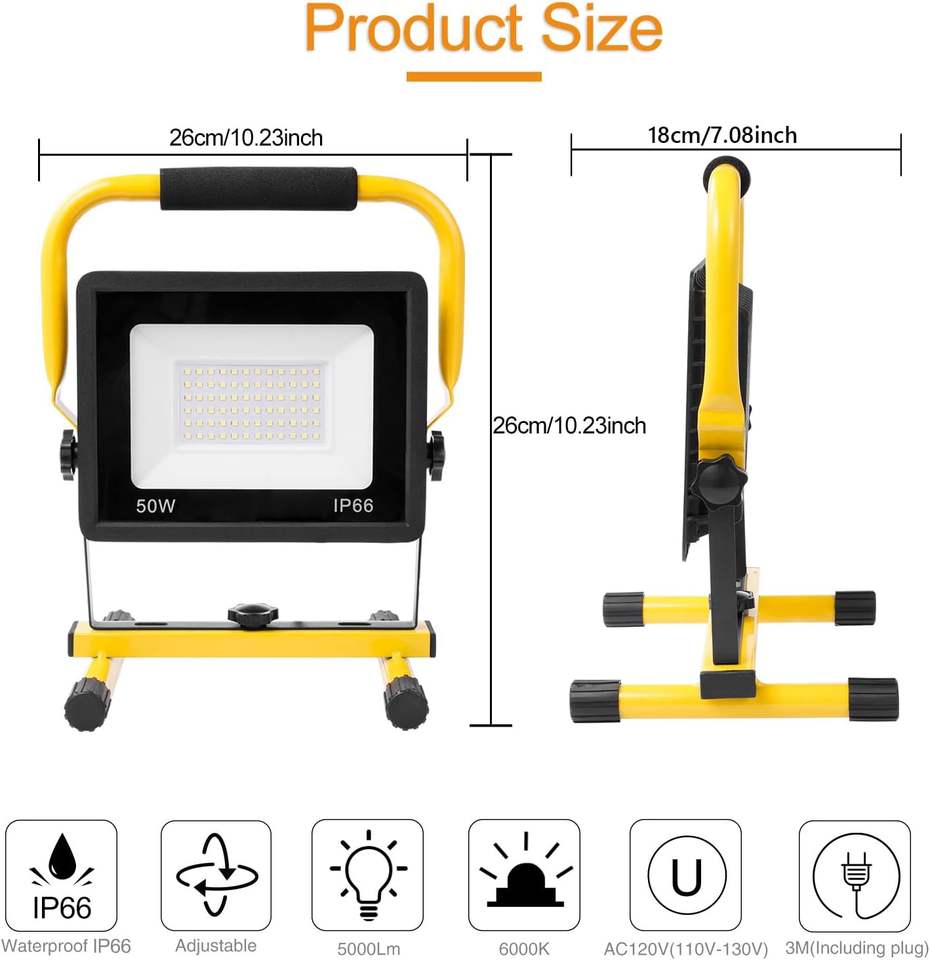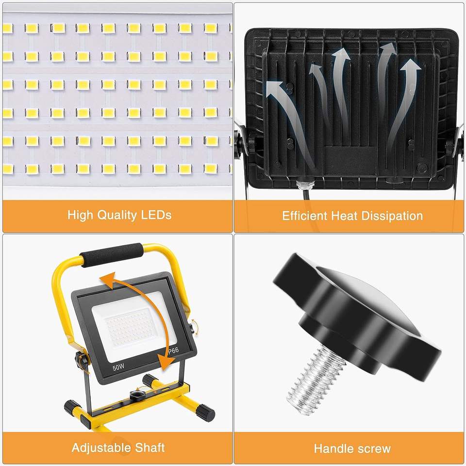Projecteur de chantier LED 5000LM, lampe de chantier portable, lampe de chantier LED 50 W, éclairage de chantier IP66, projecteur de chantier