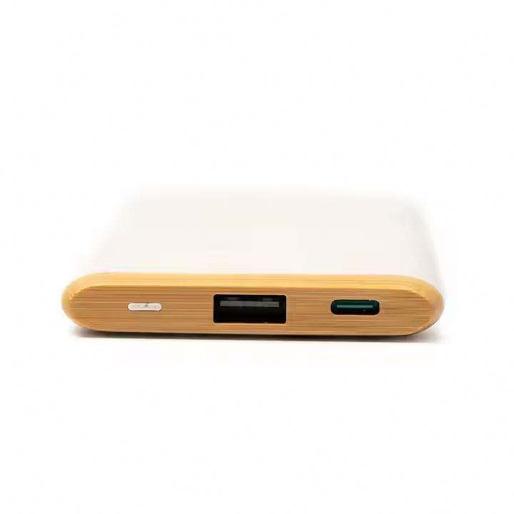 Batterie externe 5000 mAh en paille de blé et bambou, ultra-mince, petit format, cadeau idéal, batterie externe portable pour téléphone portable en paille de blé