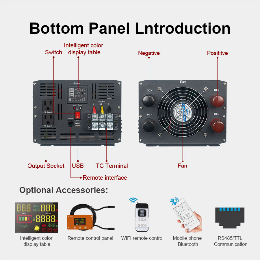Onduleur 5000W DC 12 Volts à AC 120V 220V avec interrupteur à distance LCD WIFI Bluetooth RS485 et port USB Onduleur à onde sinusoïdale pure