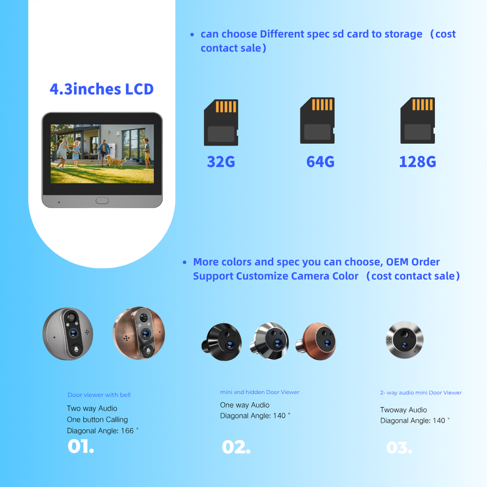 5000mAh Batterie Intelligente Bidirectionnelle Audio Judas Porte Visionneuse Wifi Caméra Avec IR Vision Nocturne Pir Détection de Mouvement pour la Sécurité Domestique