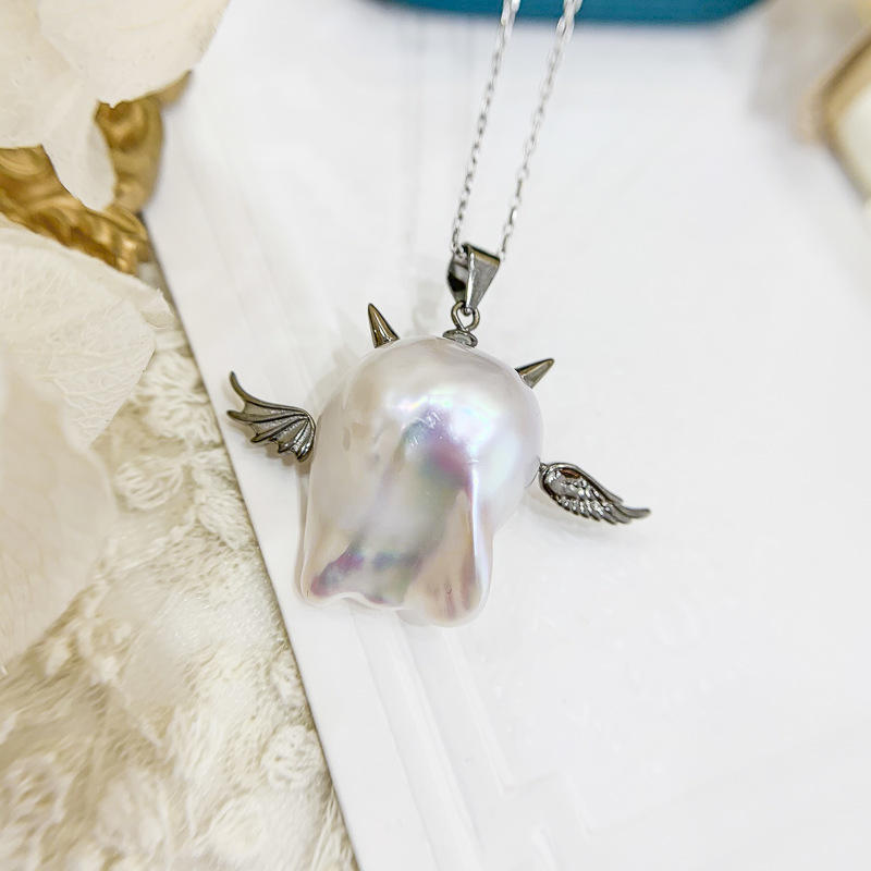 5001DIY S925 Silver Pendant Baroque Alien Style Top Drifting Devil Empty Pendant for Necklace Accessories Pearl Pendants Charms