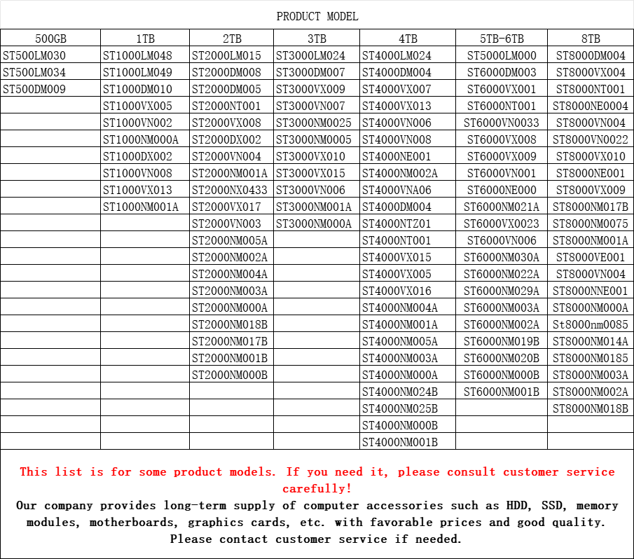 ST500LM030, ST500LM034, ST500DM009, ST1000LM048, ST1000LM049, ST1000DM010, ST1000VX005, ST1000VN002, ST1000NM000A, ST1000DX002, ST1000VN008, ST1000VX013, ST1000NM001A, ST500LM021