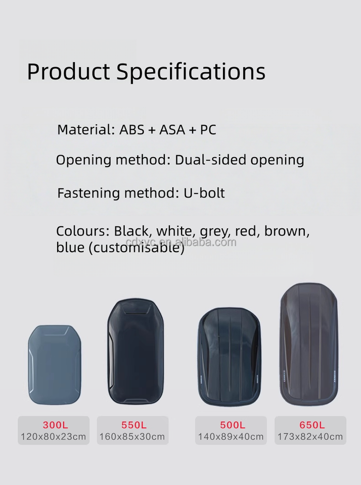 Boîte de toit de voiture grande capacité 500L ABS à double ouverture latérale, robuste, pour le transport de marchandises, idéale pour les voyages en plein air, SUV et fourgonnettes