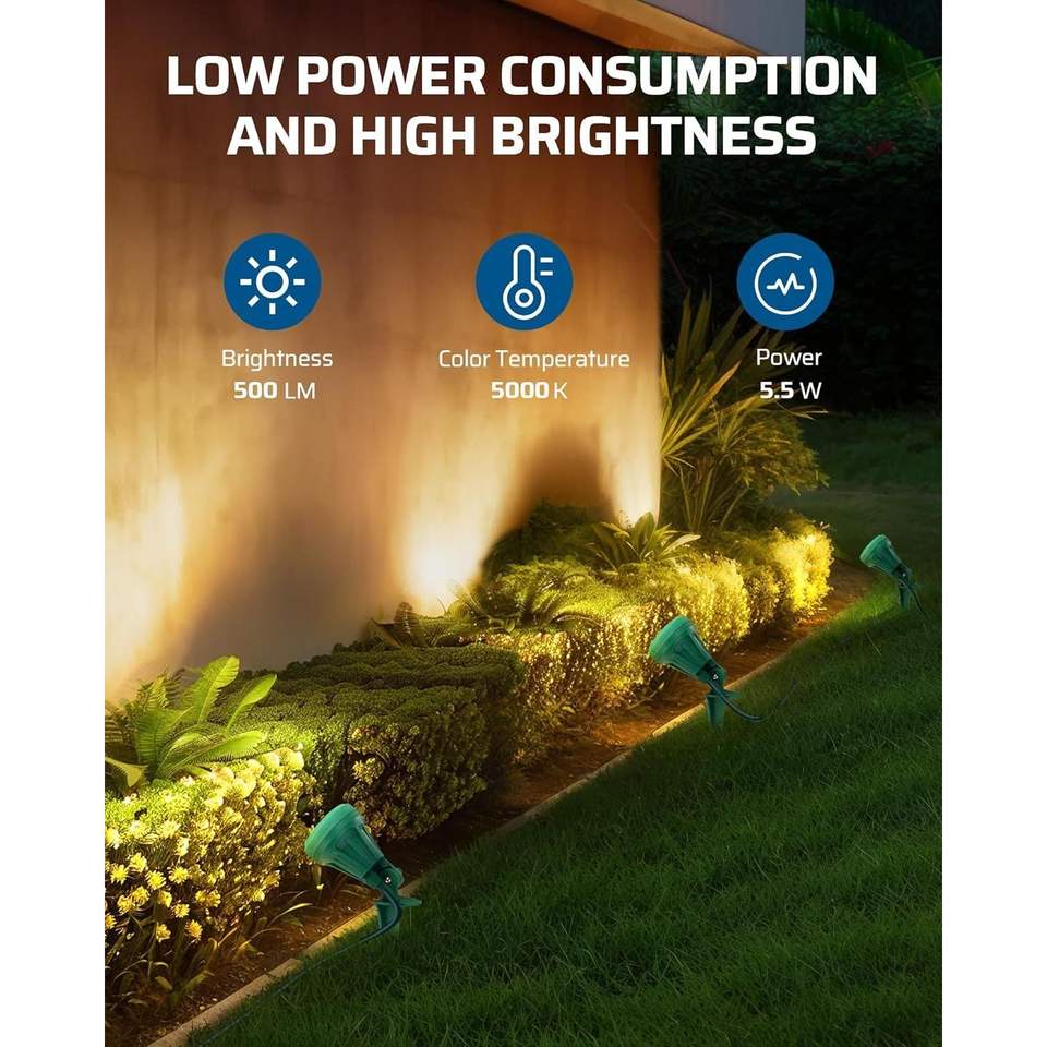 Projecteur LED étanche 500LM 120V pour extérieur avec 3 lentilles supplémentaires (rouge, jaune, vert) pour l'éclairage paysager des fêtes