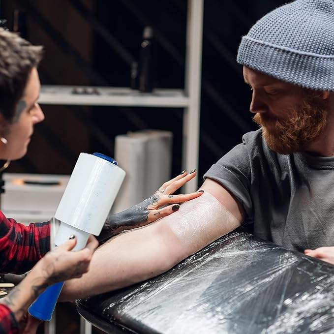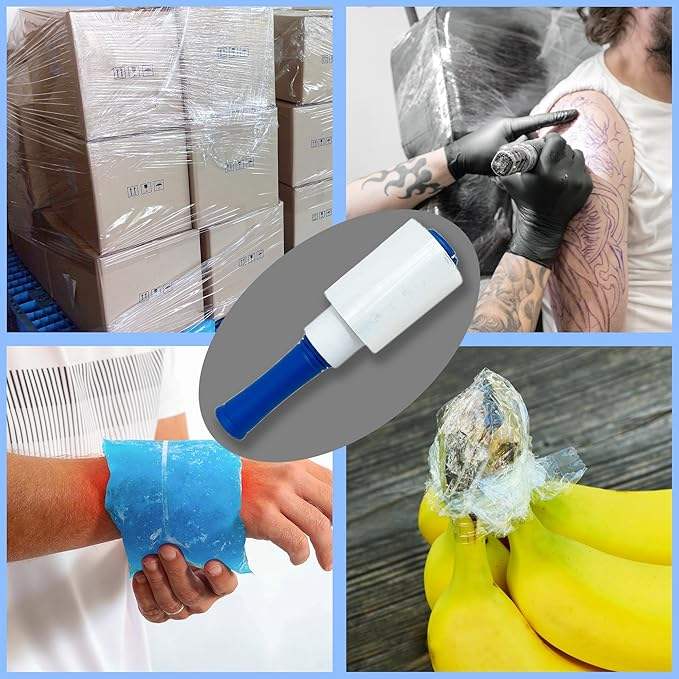Film étirable transparent de 500 pieds avec poignée rotative, film adhésif élastique pour tatouage, fixation de poche de glace, soutien des blessures sportives, corps