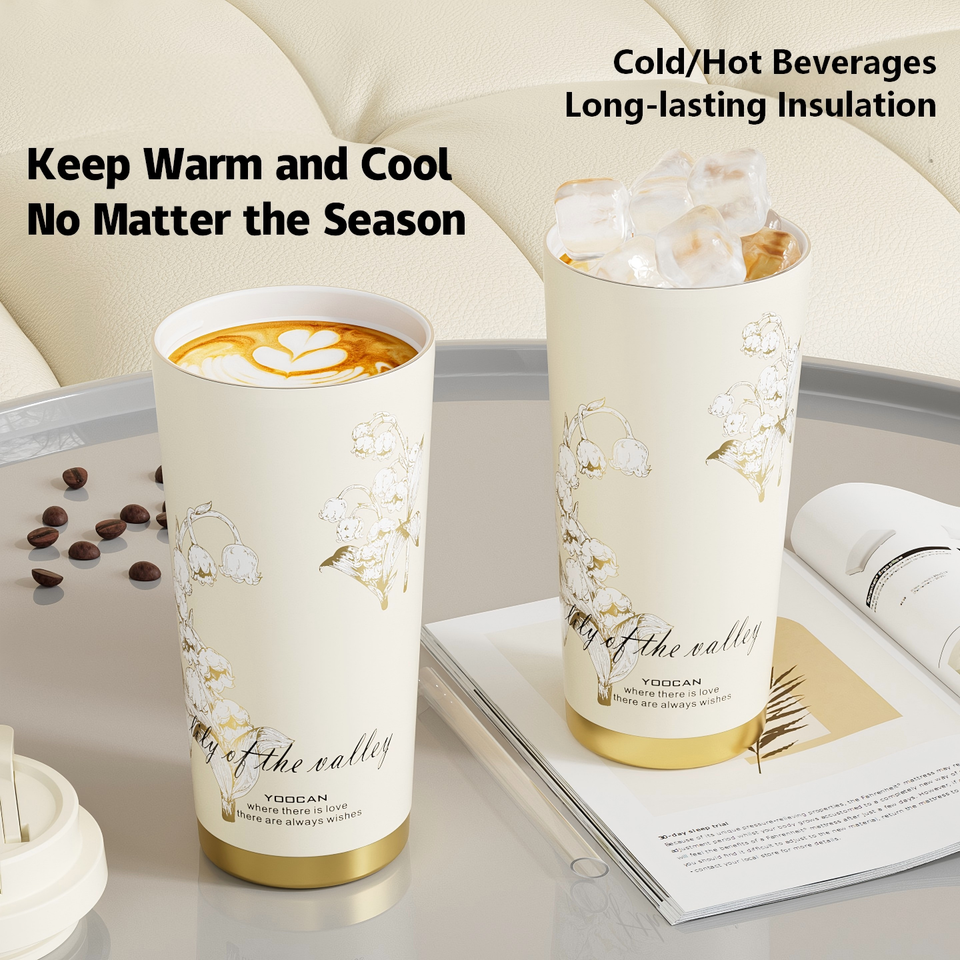Tasse à café isotherme sous vide 500 ml avec procédé de marquage à chaud 3D, intérieur en acier inoxydable 316L avec revêtement céramique, couvercle en PP compatible alimentaire