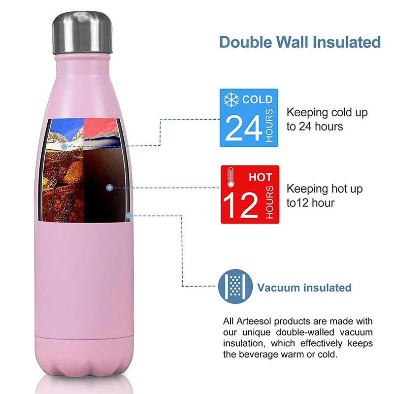 500ml 600ml 750ml 1000ml Custom Powder Coated Stainless Steel Eco-Friendly Applicable Insulated Sports Bottle Vacuum Tumbler Lid