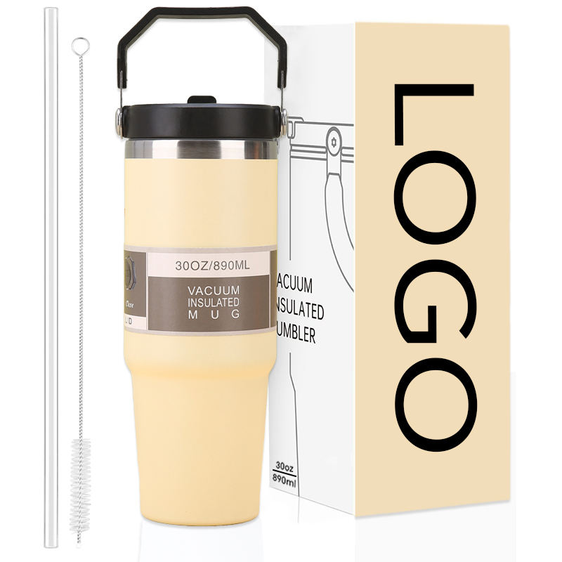 Bouteille d'eau en acier inoxydable à double paroi en gros, gourde de 30 oz avec poignée et couvercle