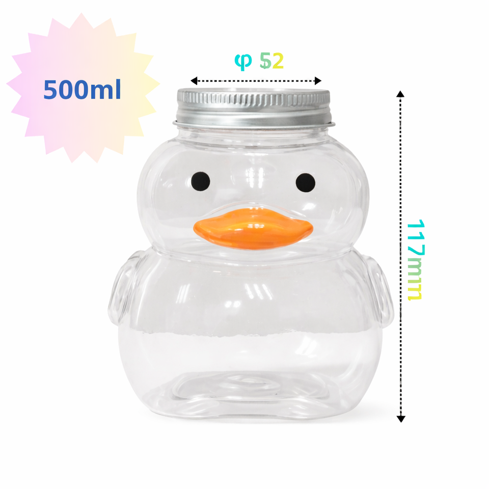 Bouteille en plastique PET de 500 ml en forme de canard mignon avec couvercle à vis en aluminium, emballage OEM pour boissons (lait, thé, jus, café) avec fermeture sécurisée