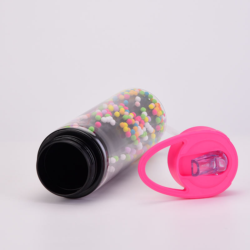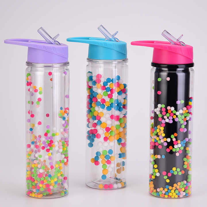 500ml Double Layer Plastic Bottle POM for Ball Straw New Creative Gradient Rainbow Color Leak-proof for Cute Design for Children