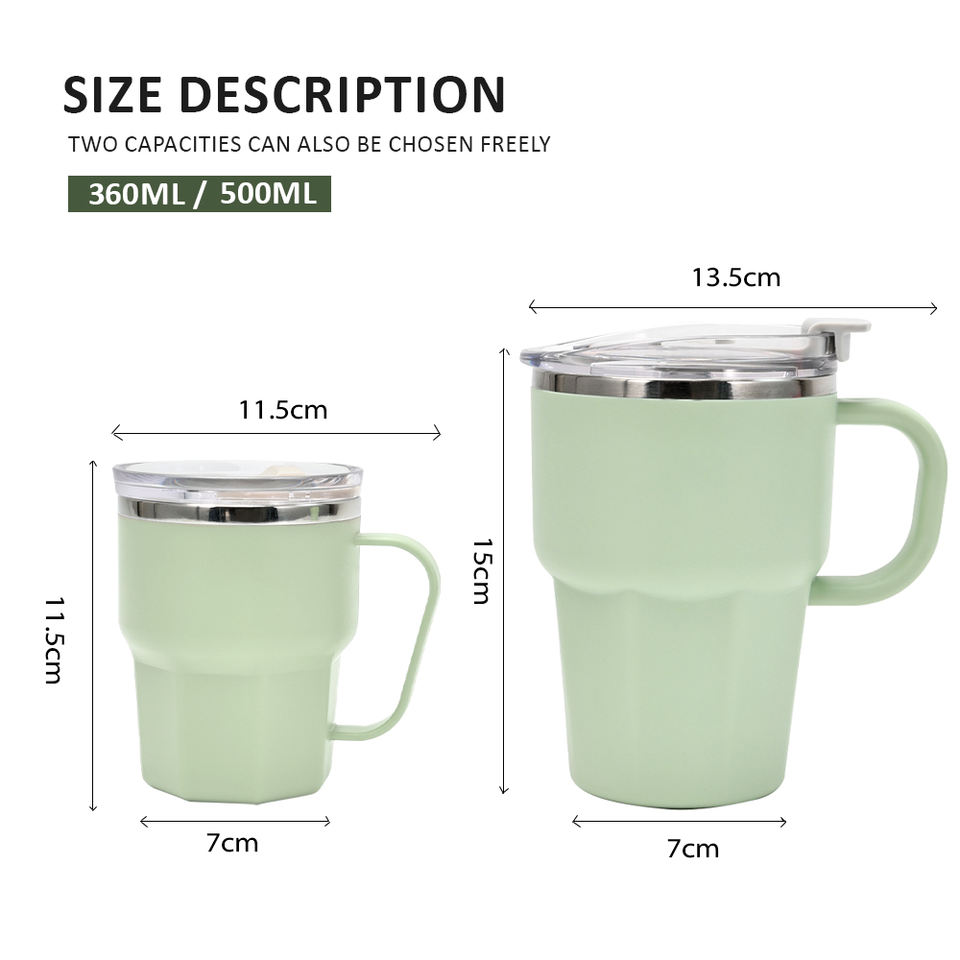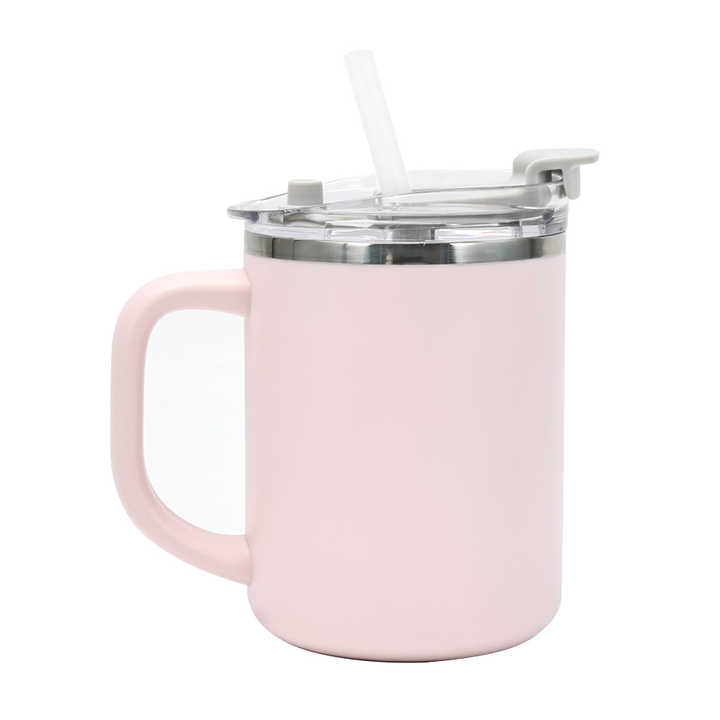 Mug isotherme portable moderne en acier inoxydable 304 à double paroi de 500 ml avec isolation thermique extérieure en PP, paille et poignée pour le camping et le bureau