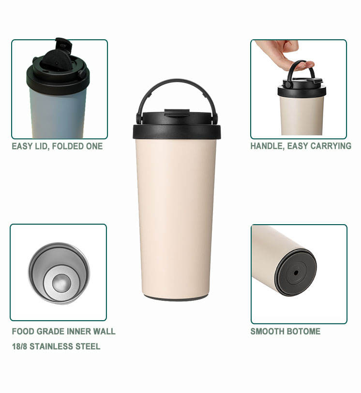 500ml Never Fall Magic Thermos Mug avec revêtement en céramique Tasse à café anti-fuite avec couvercle rabattable et poignée