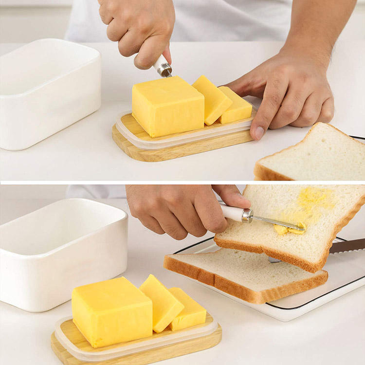 Boîte à beurre nordique 500ml plaque à beurre en céramique avec couvercle en bois et couteau plateau de stockage du fromage récipient à beurre