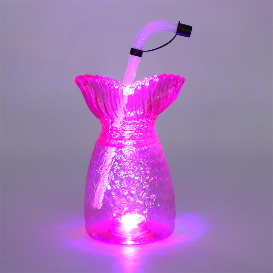 Gobelet à paille en PET de 500 ml avec lumière LED clignotante, forme de sirène à queue de poisson pour jus, thé à bulles Boba - Vaisselle en plastique, soucoupes, pailles