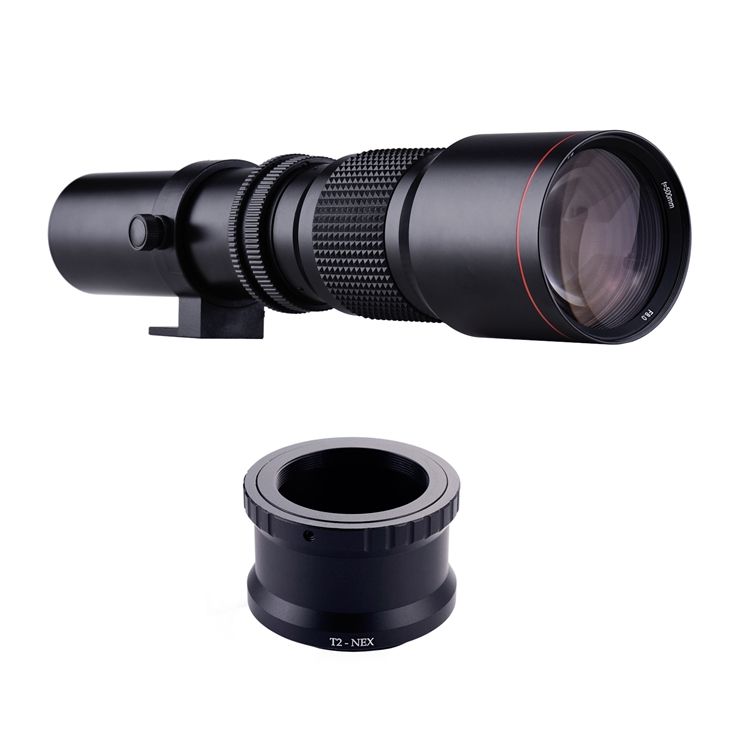 Objectif super téléobjectif multi-revêtement 500 mm F/8.0-32 Zoom manuel + Kit d'adaptateur T-Mount vers NEX E-Mount pour appareils photo