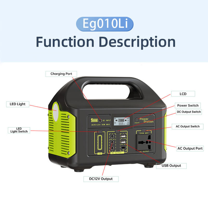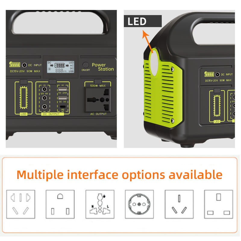 Générateur solaire portable 500W à faible bruit, station d'alimentation à onde sinusoïdale pure pour les pannes de courant et les urgences