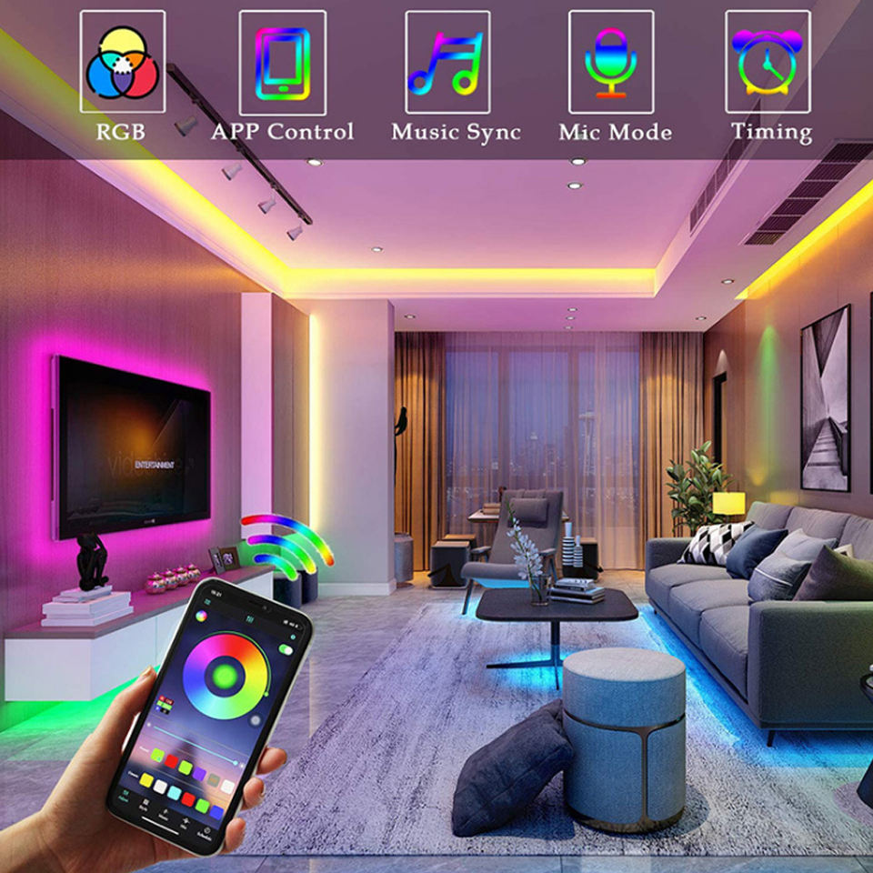 Bande lumineuse LED RGB 5050 12V 30D à changement de couleur, étanche IP65, contrôle par application WiFi Google Assistant/Alexa, 5M, dimmable, décorative