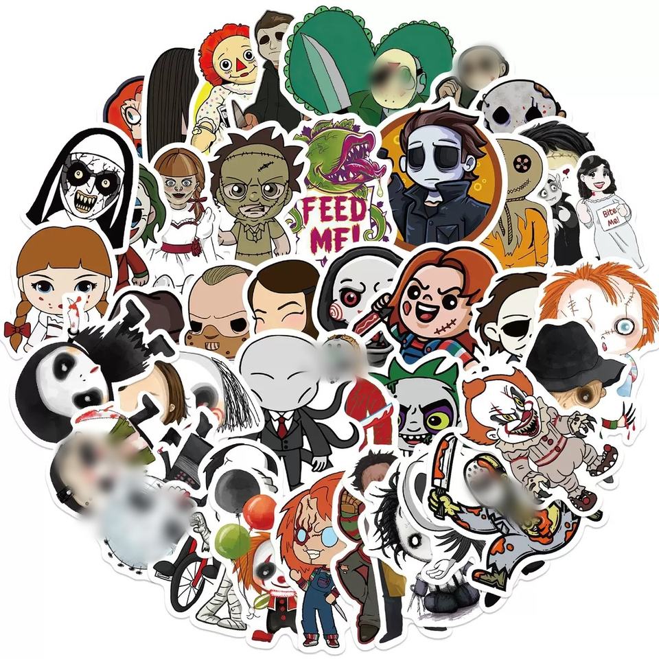 50 pièces Q version thriller films rôles d'horreur fantôme décalcomanies clown effrayant tueur autocollant