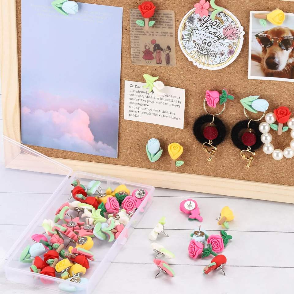 Lot de 50 punaises à fleurs décoratives pour tableau de liège, tableau d'affichage