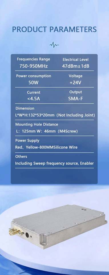 50W 400-1100MHz Anti-Drone C-UAS Defence Power Amplifier Module GaN RF Signal UAV Counter Blocking VCO Source System Jamming
