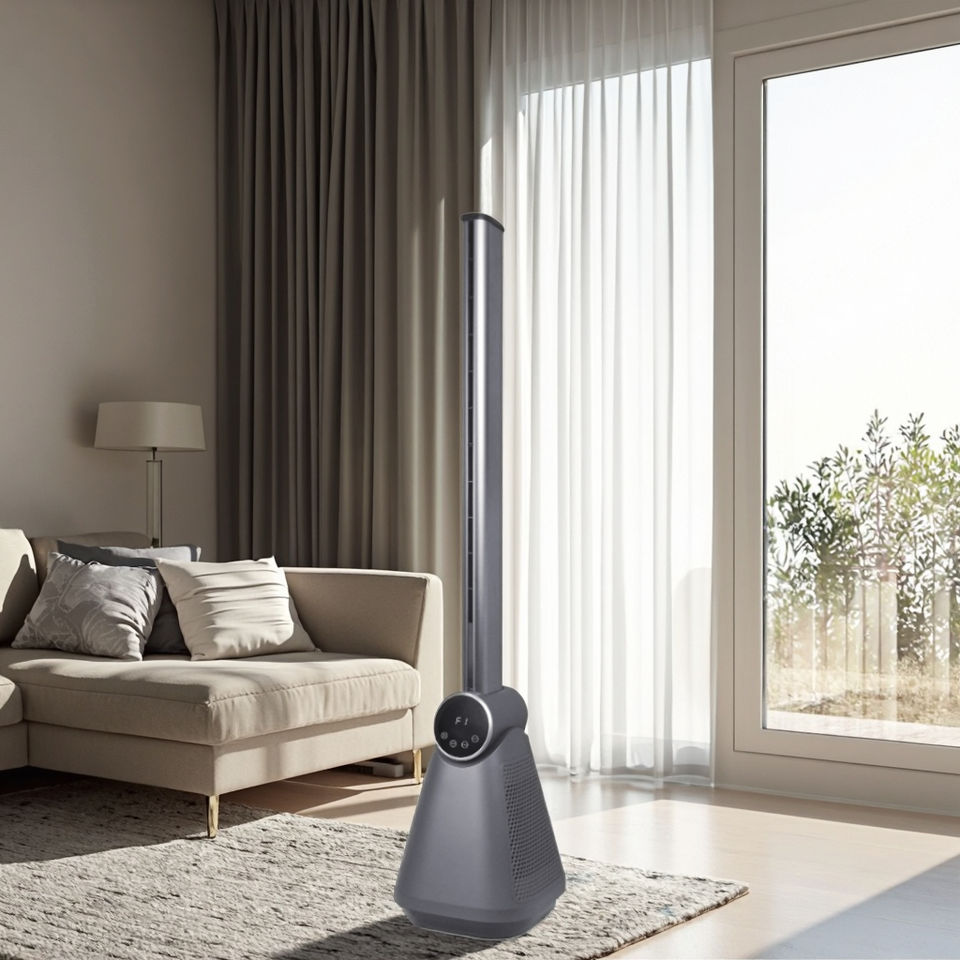 Ventilateur de colonne de tour à 3 vitesses sans lame 50W avec minuterie de télécommande 3 modes d'installation au sol pour le refroidissement de l'hôtel certifié ROHS