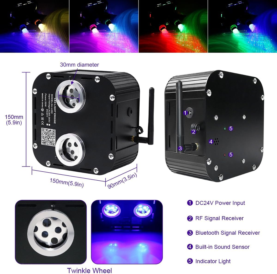 Moteur de lumière à fibres optiques à double couleur 50W, source de lumière à fibres optiques à haute luminosité, générateur de lumière RGBW pour plafond étoilé