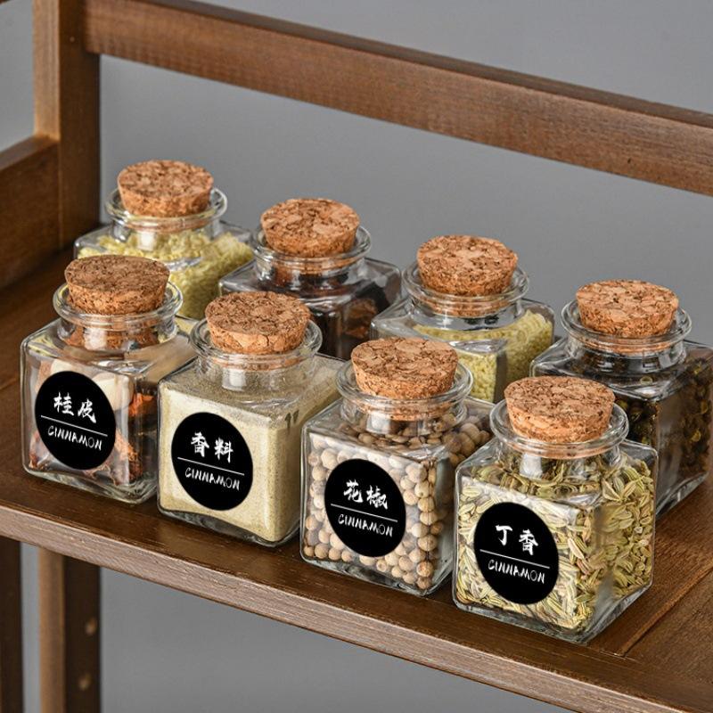Nom du produit:Pots de rangement en verre transparents carrés pour épices