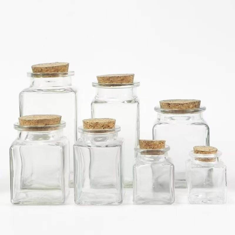 Bocaux en verre transparents carrés à petite ouverture de 50 ml, 200 ml, 300 ml pour le stockage alimentaire (assaisonnements, céréales, légumineuses, noix) avec bouchon en liège