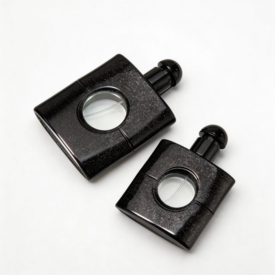 Flacon de parfum en verre de 50 ml avec un design unique - Inoubliable à première vue, noir mystérieux et scintillant