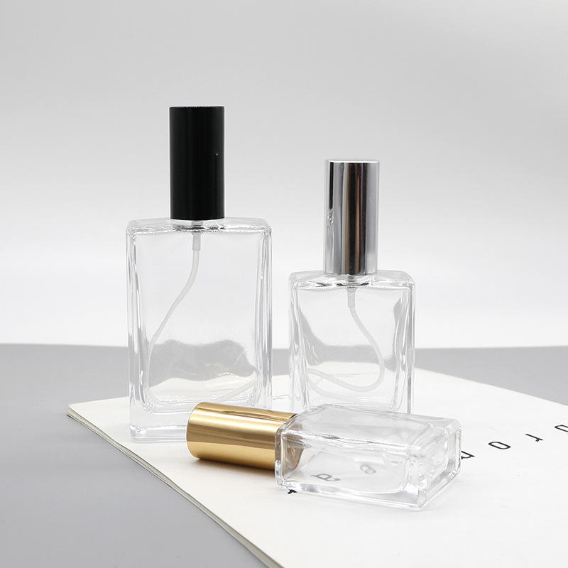 Flacon de parfum en verre carré de 50 ml, vaporisateur portable, blanc cristal, récipient cosmétique vide, bouchon en plastique à vis, fonction anti-fuite