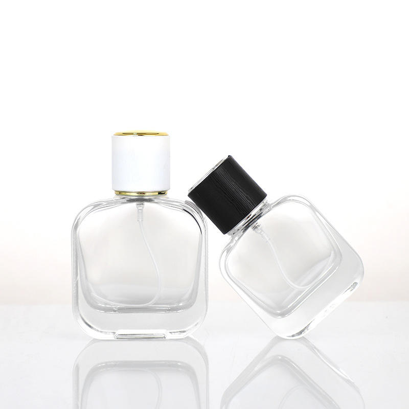 Flacon de parfum rechargeable carré de 50 ml à fond épais, flacon de parfum en verre transparent, flacon pulvérisateur à pression
