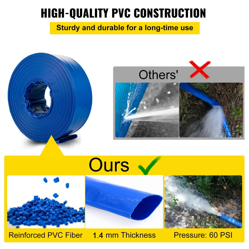 Tuyau plat en PVC de 50 mm (2 pouces), rouleau de 50 m, tuyau de refoulement flexible pour piscine, drainage, pompage d'eau, systèmes d'irrigation