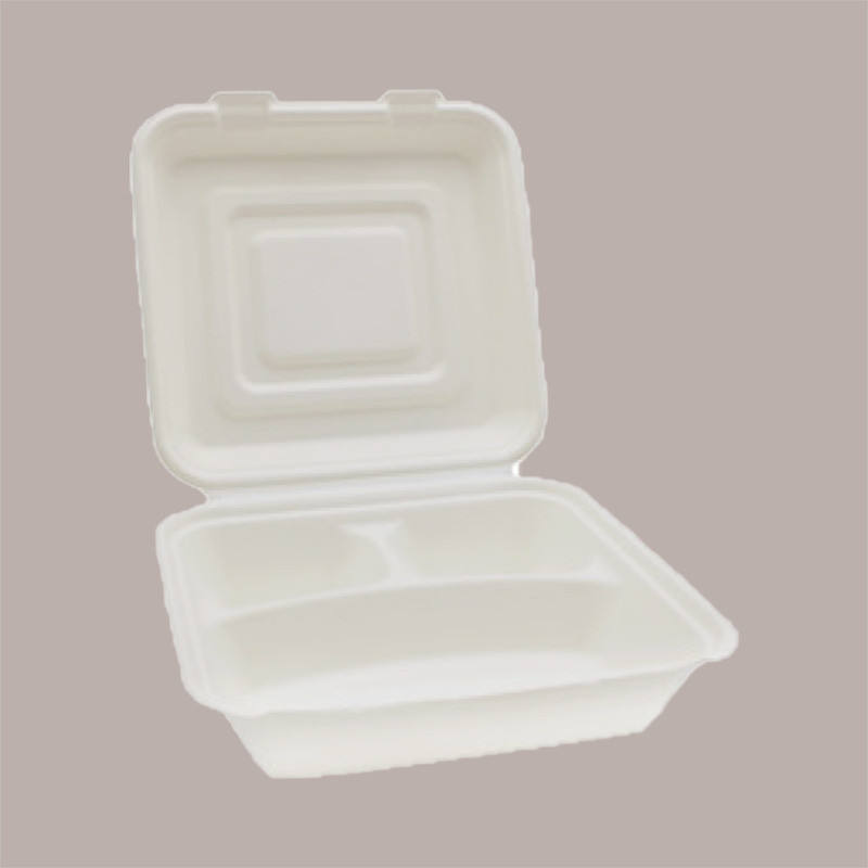 50pcs Boîte à lunch en papier de cellulose jetable Plateau à 3 compartiments avec couvercle