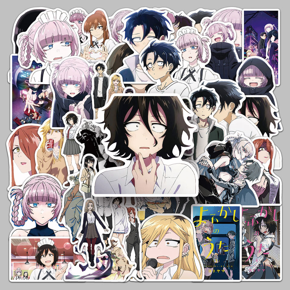 50 pièces Vente directe d'usine Autocollants imperméables en PVC à thème d'anime Song of the Night pour ordinateurs portables et bouteilles d'eau