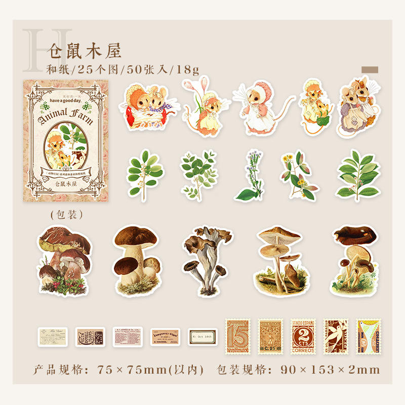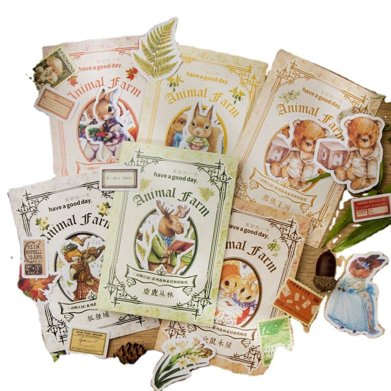 50 pcs/pack dessin animé papier autocollants Animal ferme série forêt matériel Journal décoration Base Collage 6 modèles