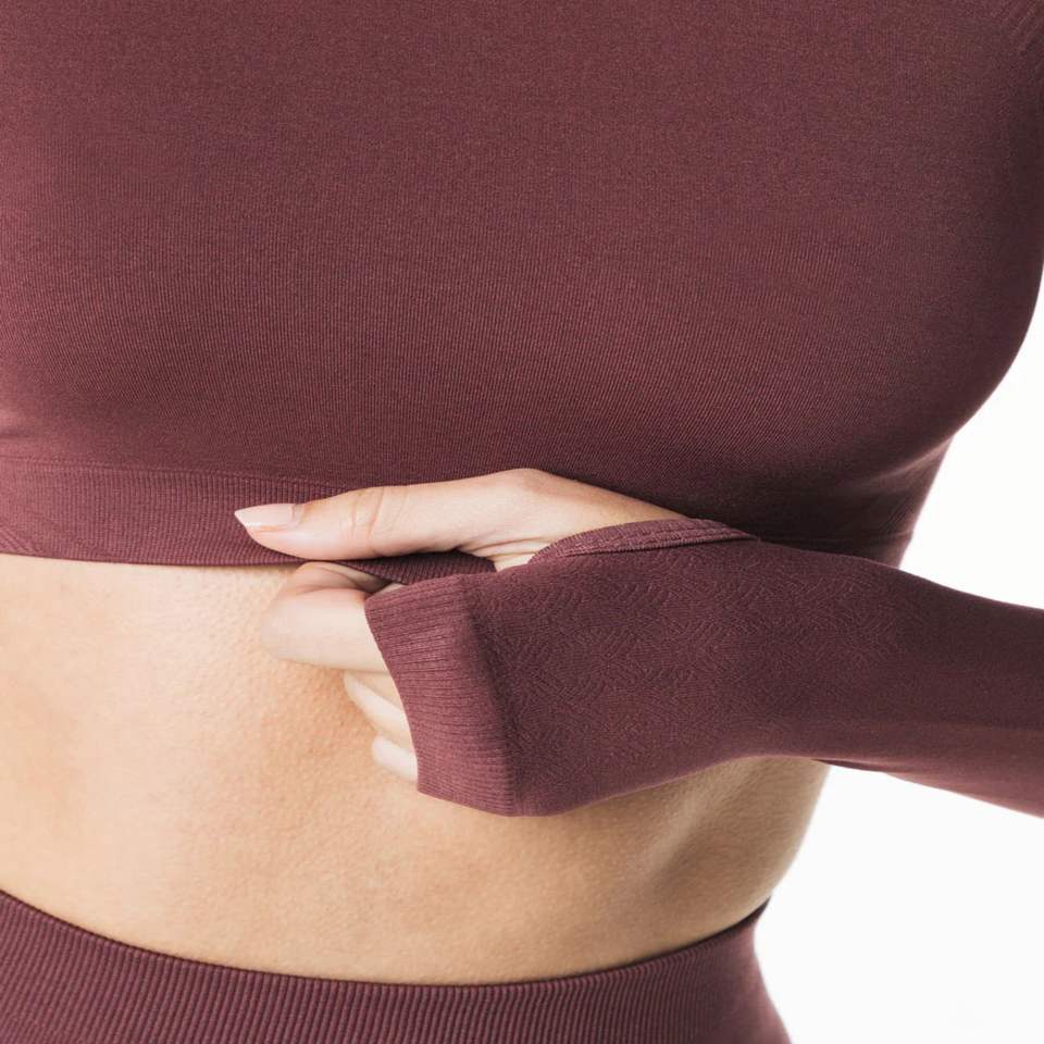 Chemise à manches longues sans couture pour femme, 51% Polyamide, 38% Polyester, 11% élasthanne, encolure ras du cou, taille Raglan, automne