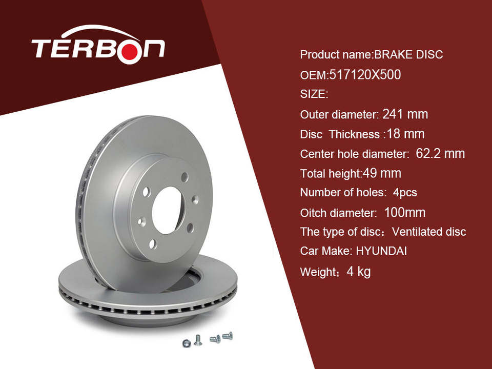 Système de freinage automatique Terbon 51712-07500 Rotors de frein à disque ventilé pour essieu avant 0 986 479 286 pour Hyundai / Kia
