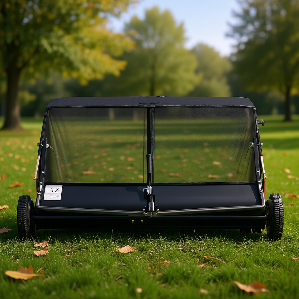 Ramasseur de feuilles et d'herbe robuste de 52 pouces, 26 pieds cubes, balayeuse de pelouse à hauteur réglable, fonctionnement manuel, noir