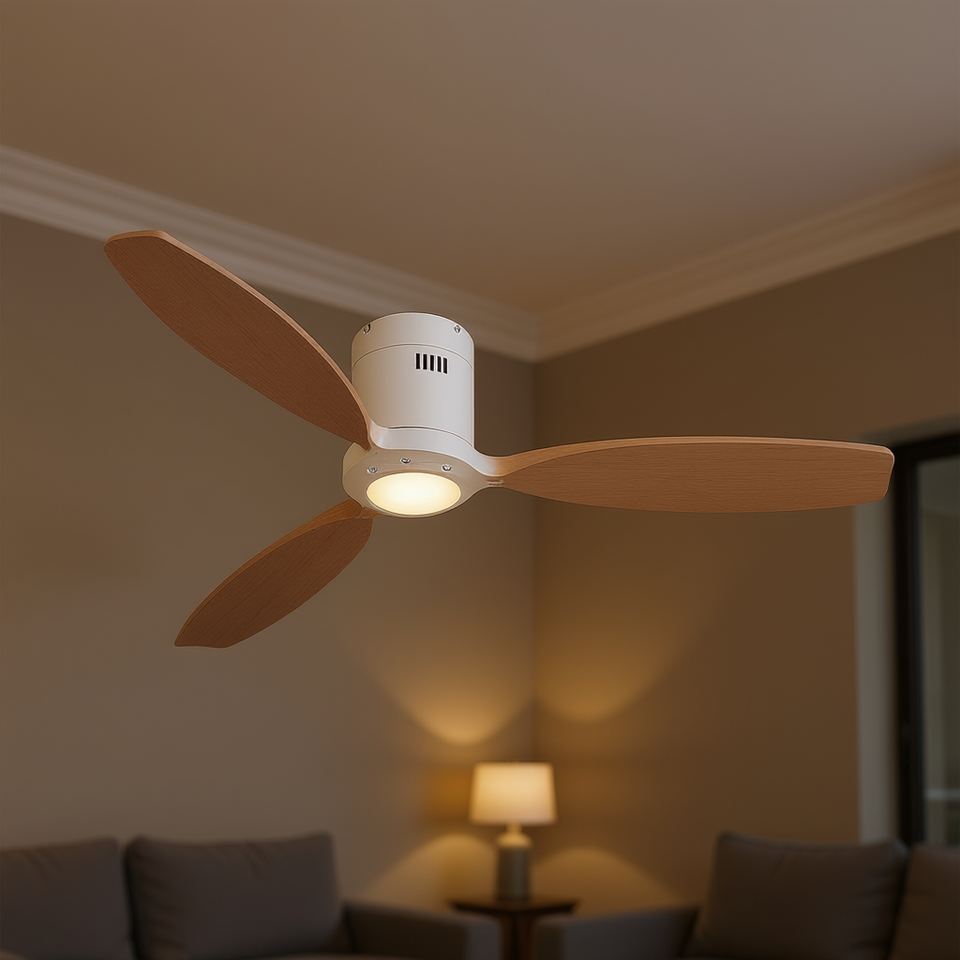 Ventilateur de plafond intérieur de 52 pouces avec 3 pales en bois, télécommande, moteur DC, lumière, usage domestique