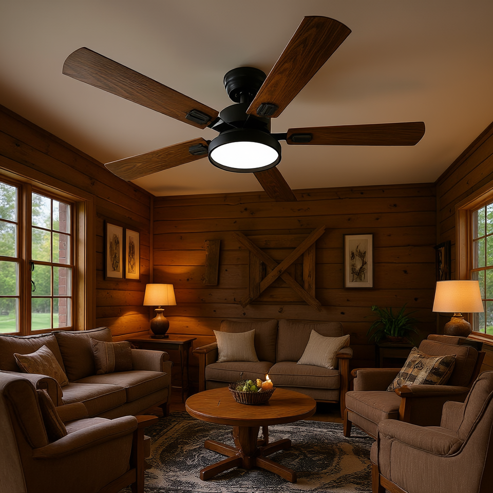 Ventilateur de plafond LED de 52 pouces avec 5 pales, lumière à intensité variable, télécommande, style farmhouse