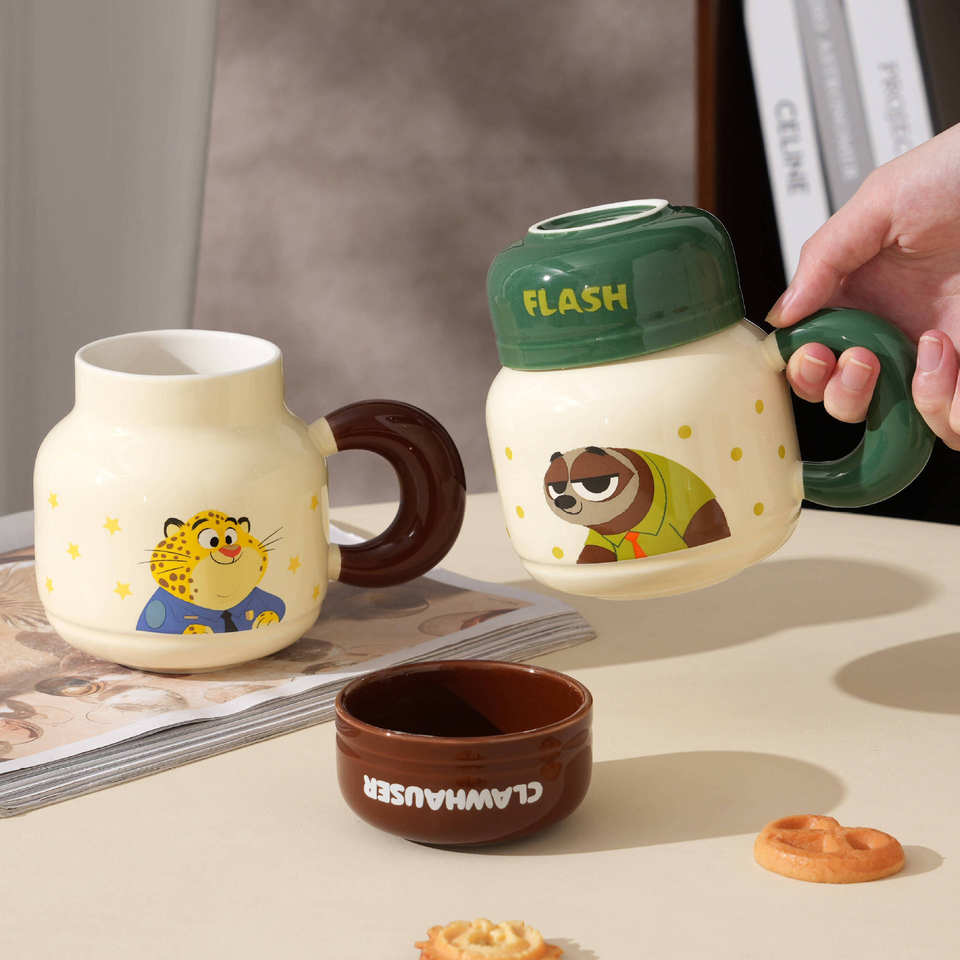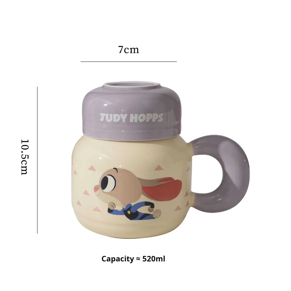 Mug en céramique réutilisable de grande capacité (520 ml) avec couvercle, design animalier de dessin animé, mug à café Judnick pour cadeaux