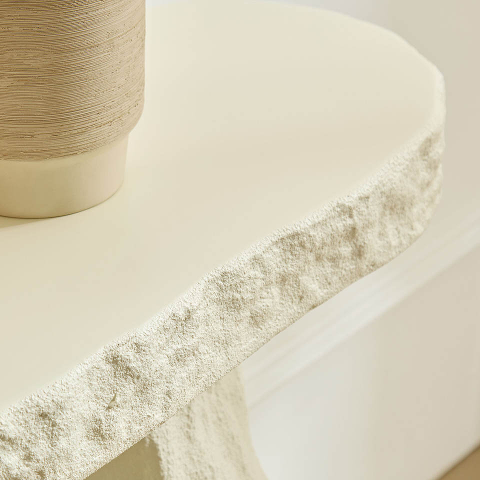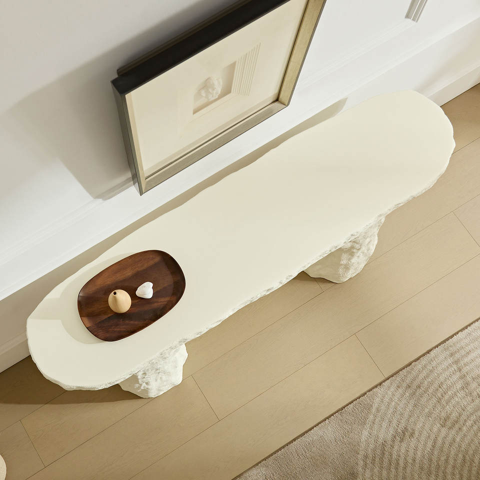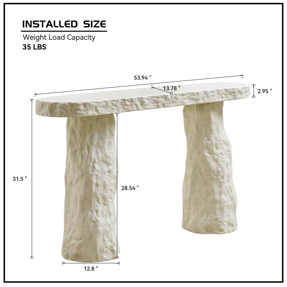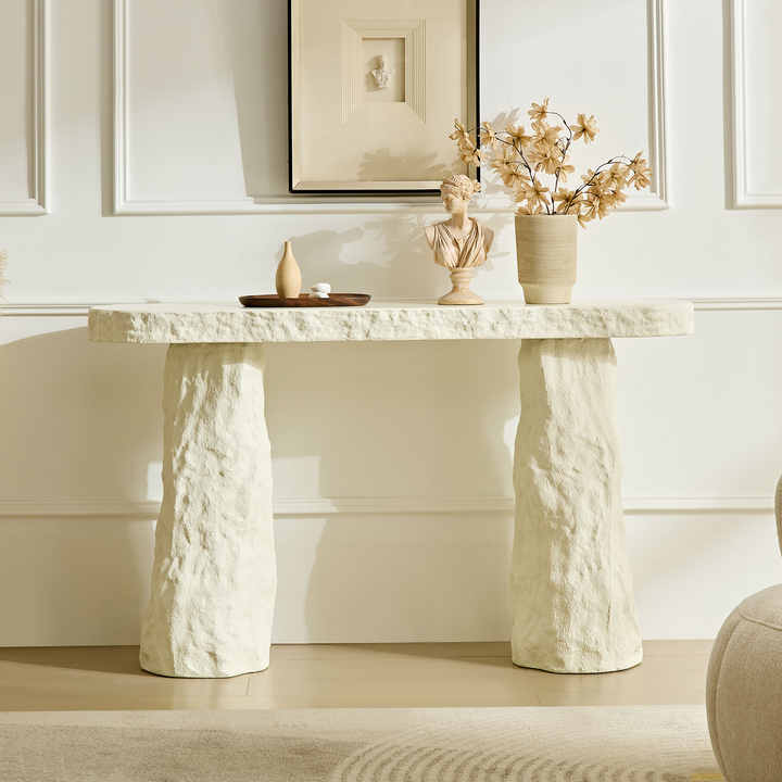 Table console au design moderne de 53,94 pouces, table en pierre, table d'entrée en fibre de verre avec pieds irréguliers pour salon